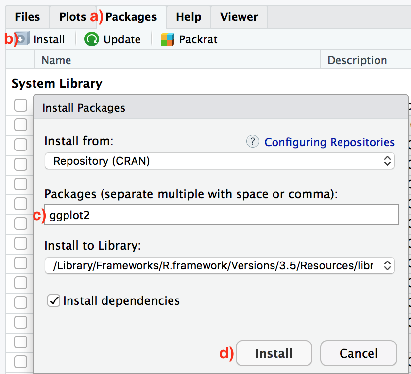 - Install R: Go to the CRAN website and download the version of R appropriate for your operating system (Windows, Mac, or Linux).