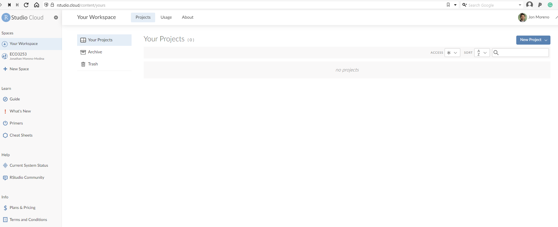 11.3.2 Using R via RStudio in Posit Cloud
