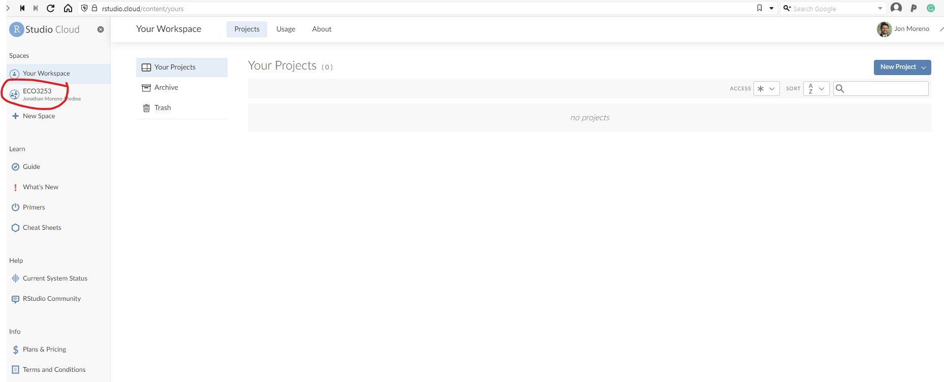 - Inside Posit Cloud select ECO3523-Fall23