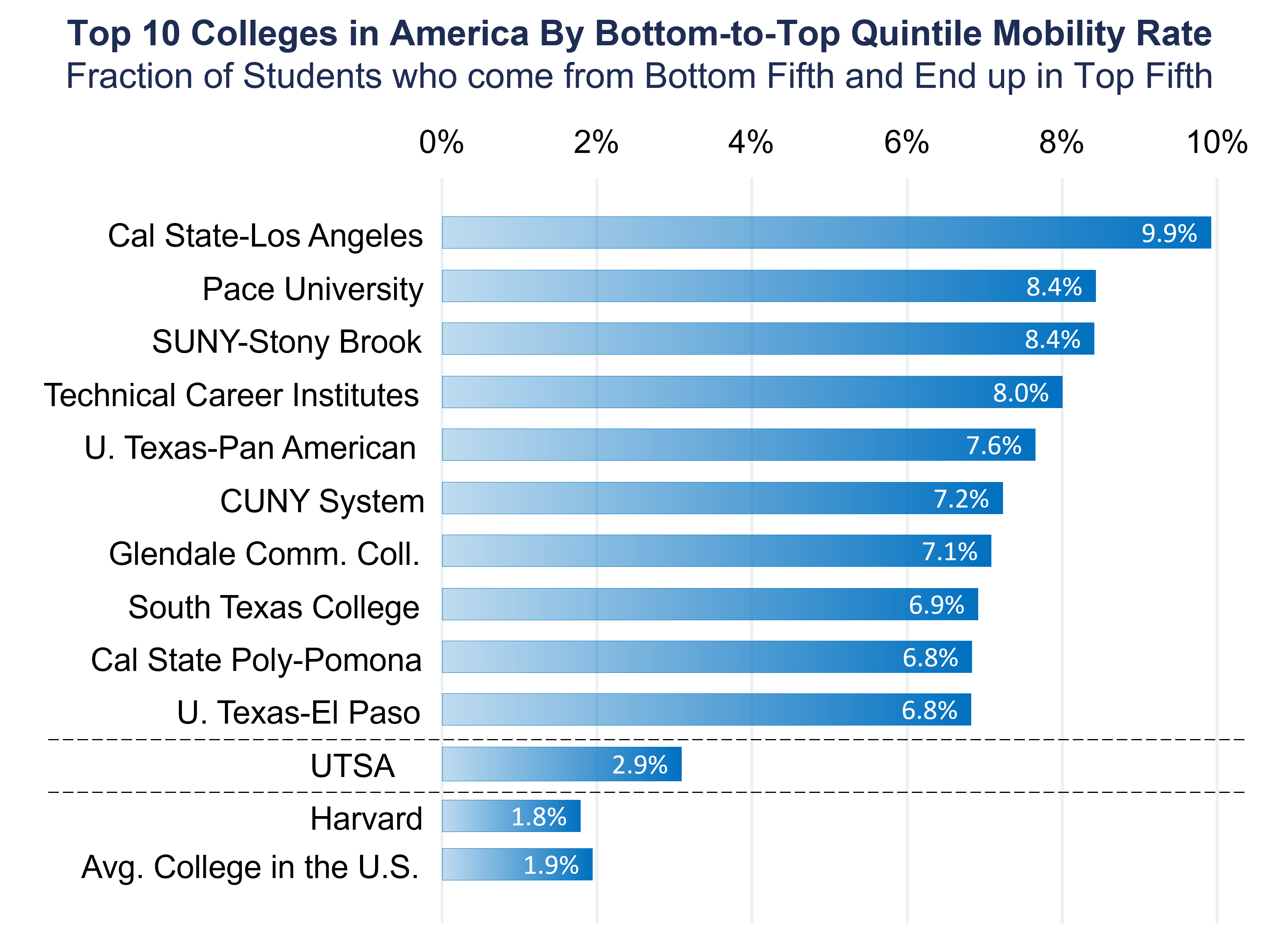 - If you want to increase mobility through the higher education system, you want to increase the representation of low-income kids at colleges with the best outcomes like Harvard and the University of Michigan Ann Arbor.