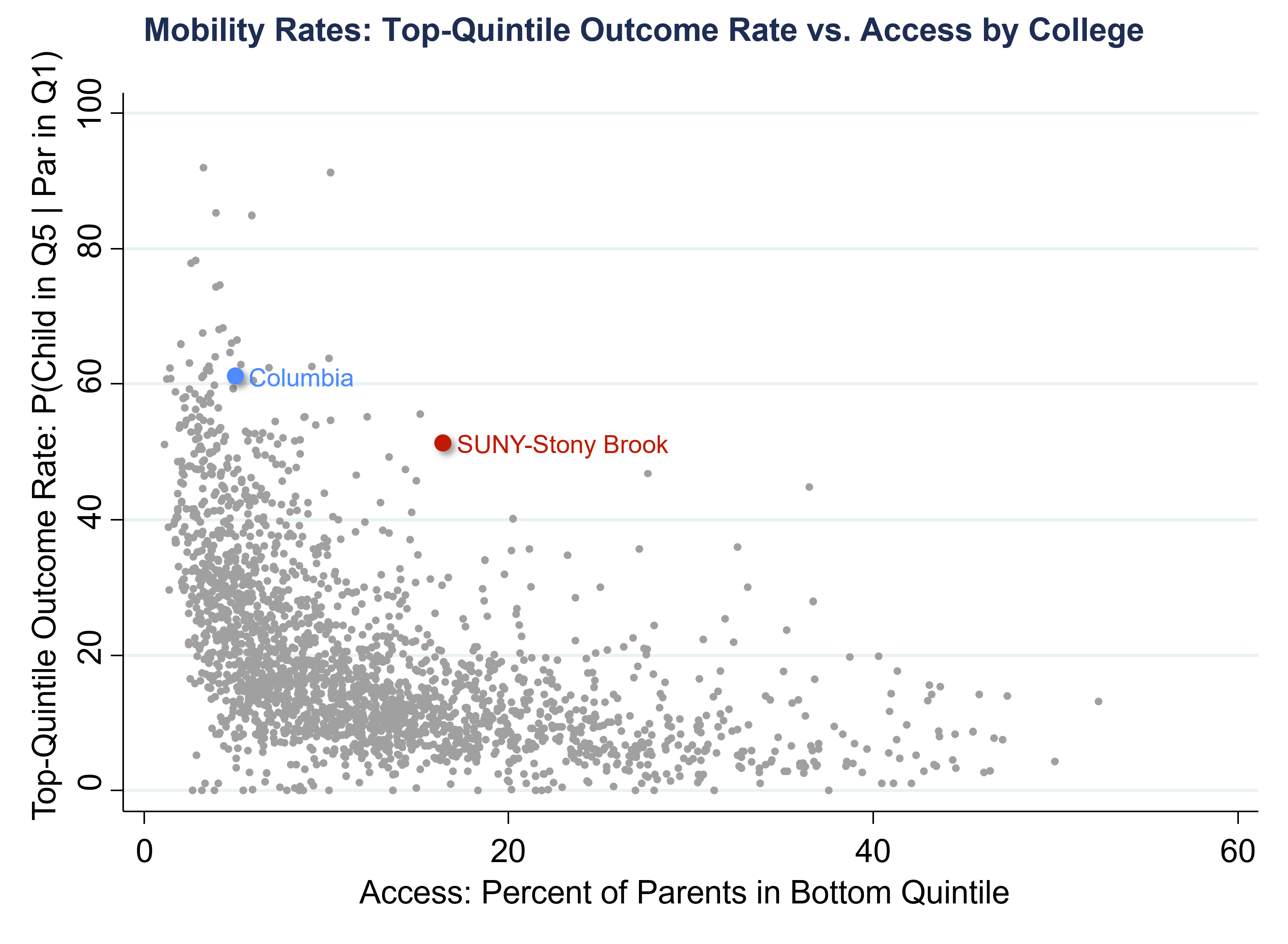 - There are colleges with many low-income students, but low mobility rates due to poor outcomes.