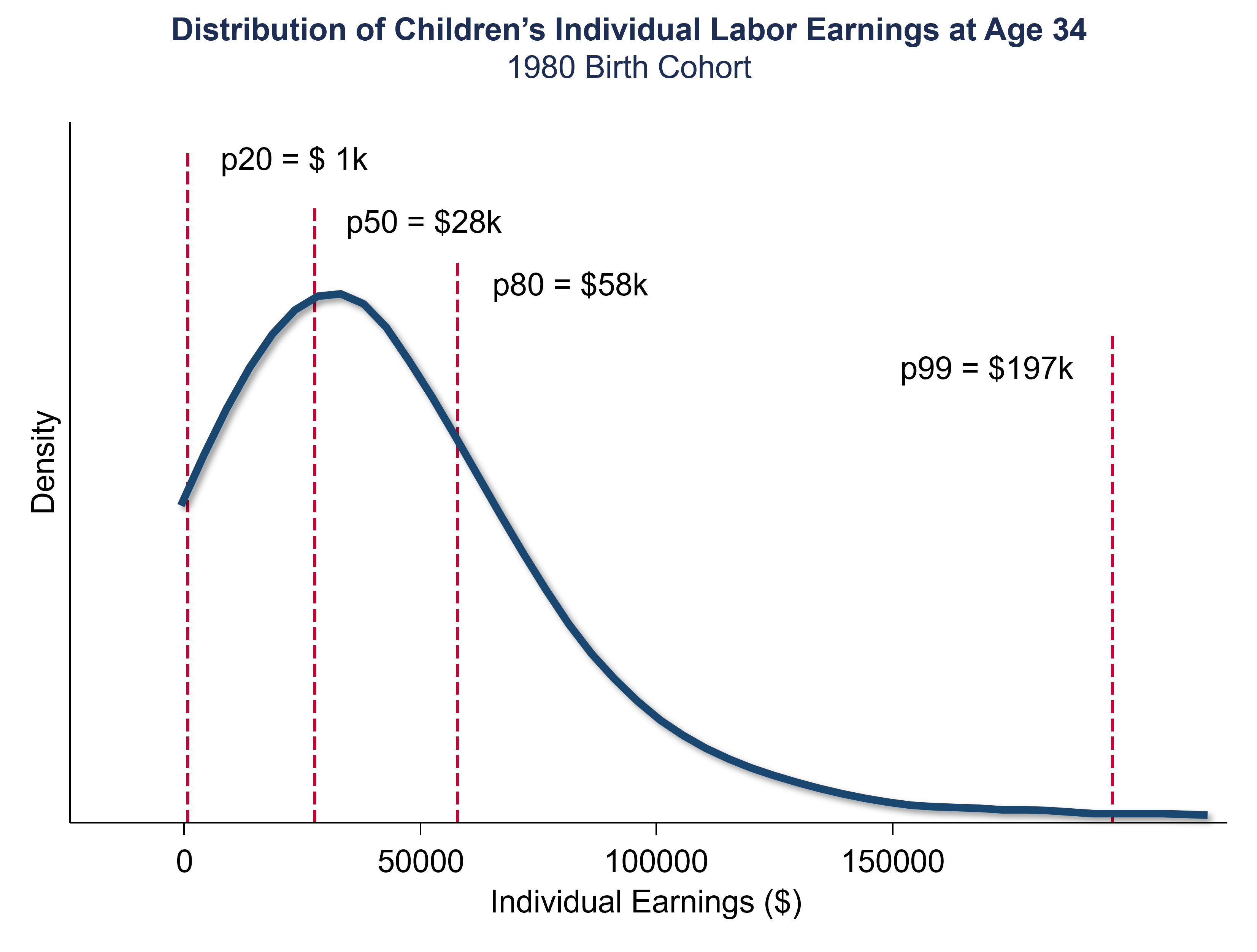 - Some patterns are driven by differences in marriage rates rather than differences in a child’s own earnings if you use household income measures in the early or mid-30s.