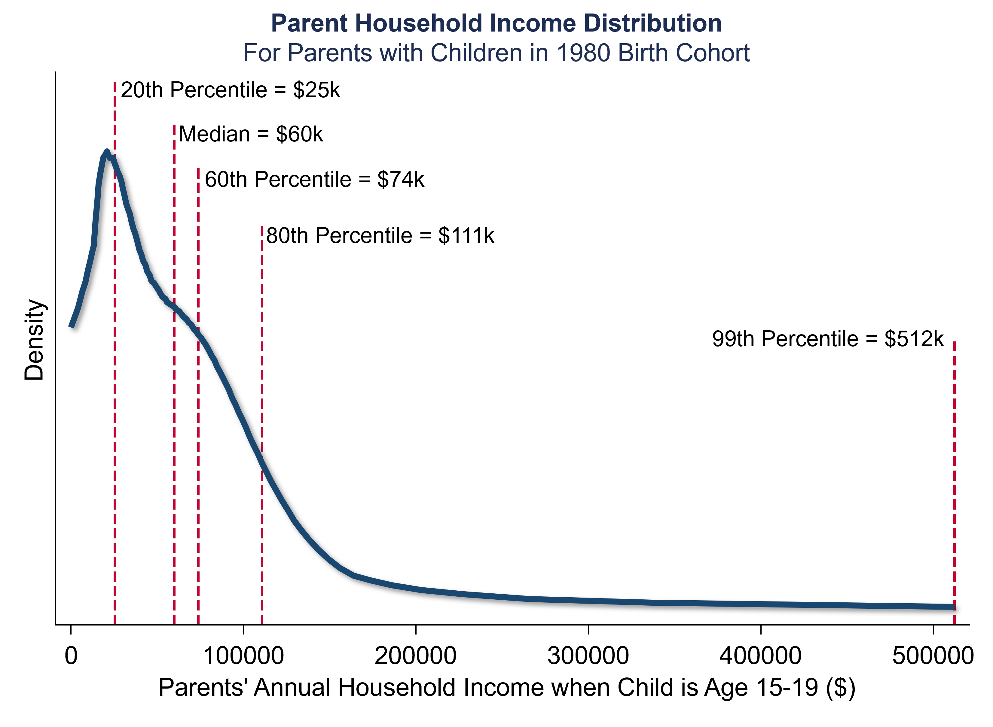 - We’re going to define parent income as average pre-tax household income during the five-year period when the child is between ages 15 and 19. We’re going to rank parents relative to other parents with children in the same birth cohort.